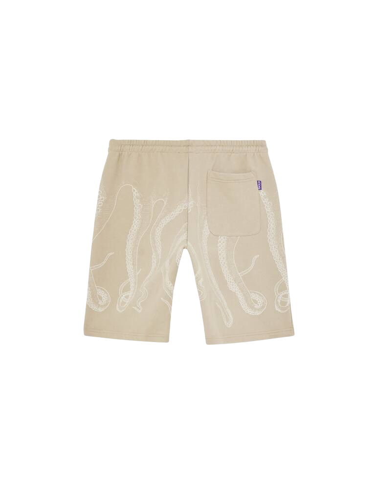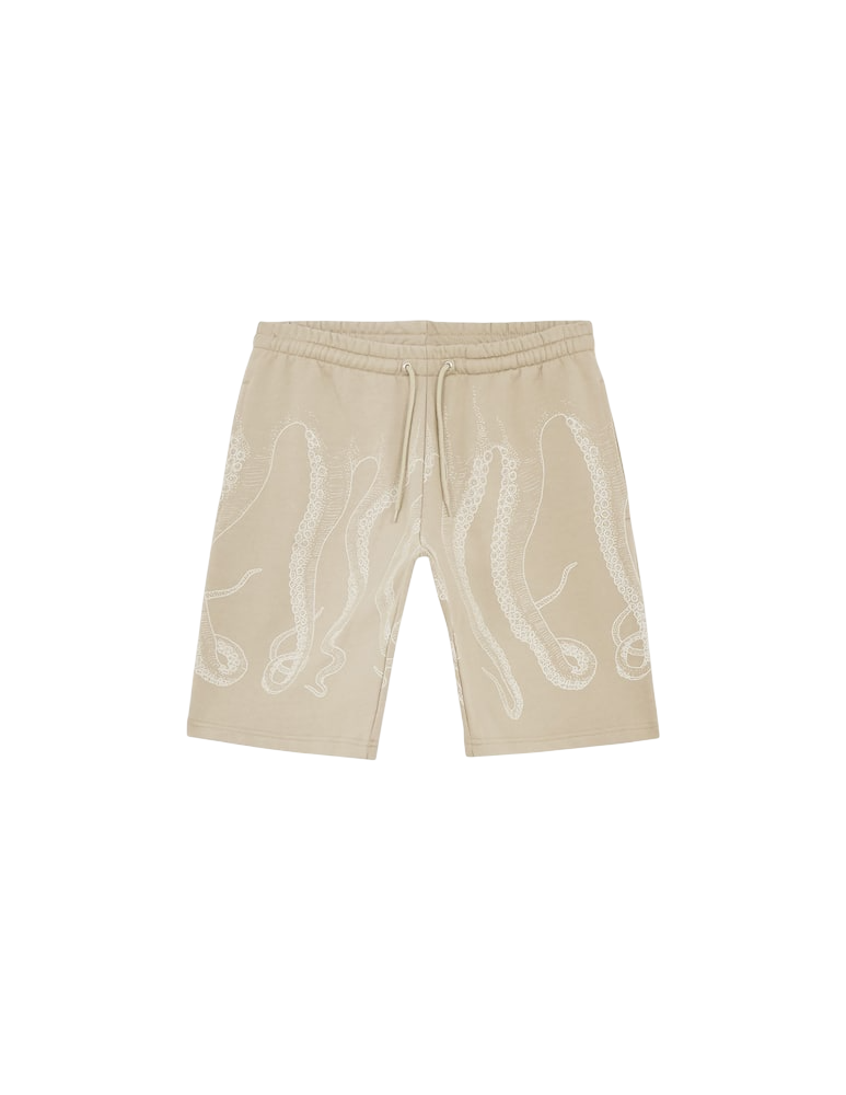 Shorts dal design moderno e distintivo, realizzati in morbido tessuto color beige. Il capo presenta una stampa artistica tono su tono raffigurante tentacoli che avvolgono l’intero pantaloncino, creando un effetto elegante ma originale. La vita elasticizzata con coulisse regolabile garantisce comfort e vestibilità personalizzata, mentre il taglio sopra il ginocchio dona uno stile casual e contemporaneo. Perfetti per il tempo libero, le giornate estive o per aggiungere un tocco creativo ai tuoi outfit.